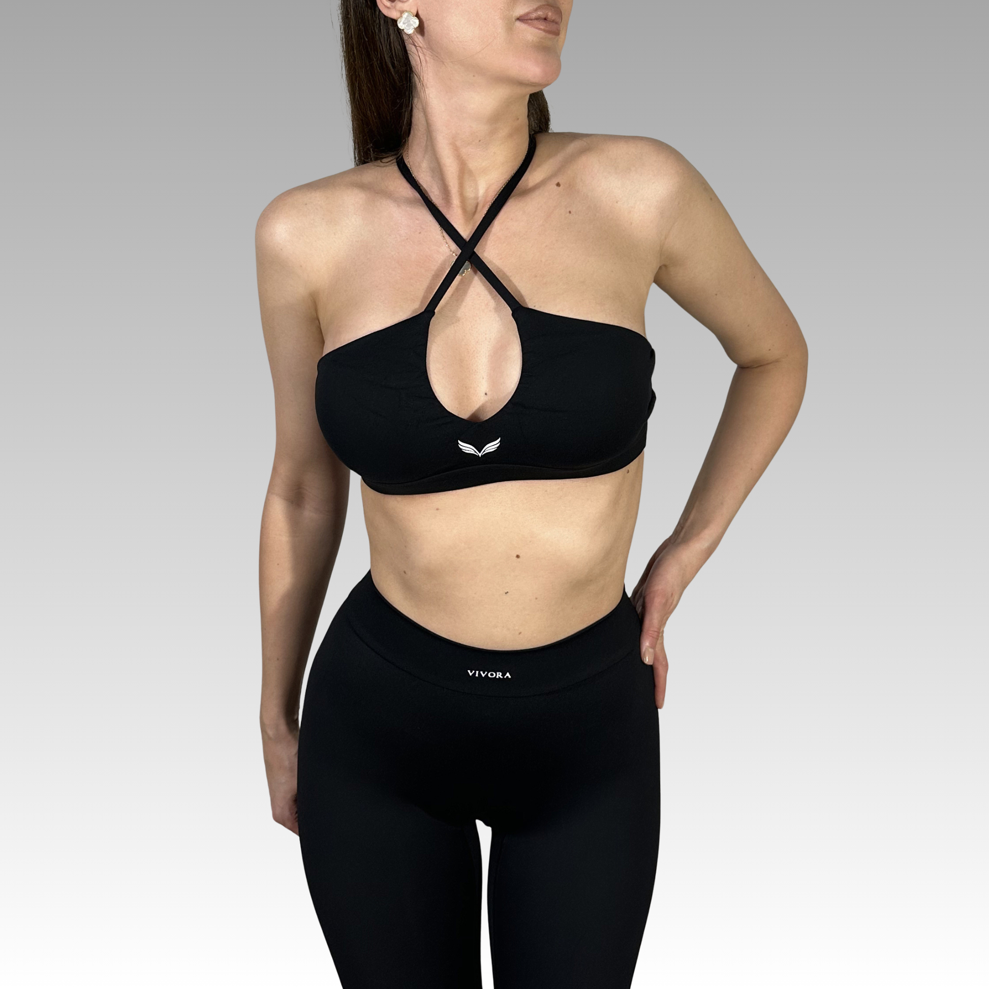 Z tyłu zastosowano V-kształtny scrunch szew, który naturalnie modeluje pośladki i podkreśla ich kształt. Elastyczna tkanina dopasowuje się do ciała jak druga skóra.